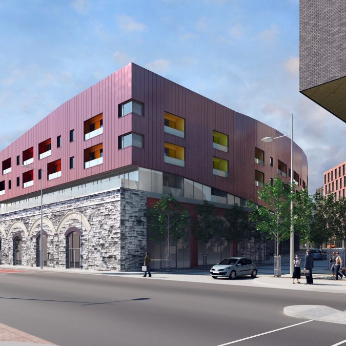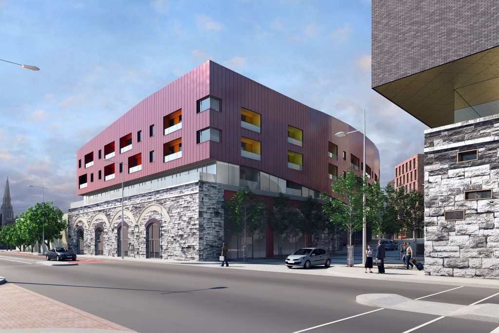 The development will create a new employment and residential quarter within Dublin City Centre adjacent to the Docklands area around a new street in buildings ranging in height between two and seven storeys that incorporate existing historic structures.